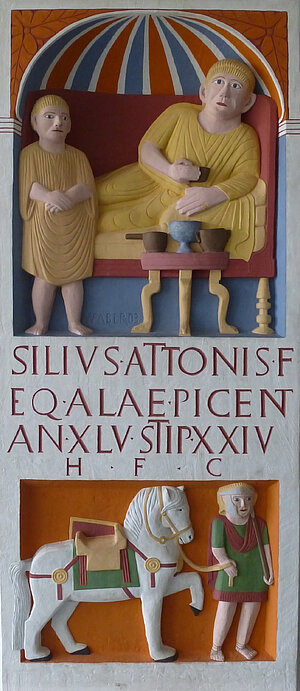 - Weinmotive in Kunst und Architektur sowie Trinkgefäße finden sich überall im Römischen Reich, auch dort wo mit großer Sicherheit kein Wein angebaut wurde. [Anm. 3]